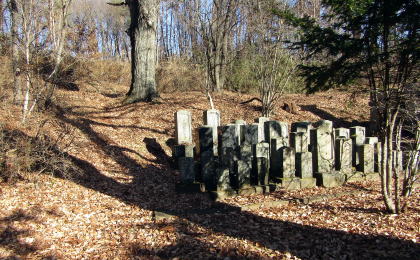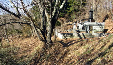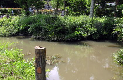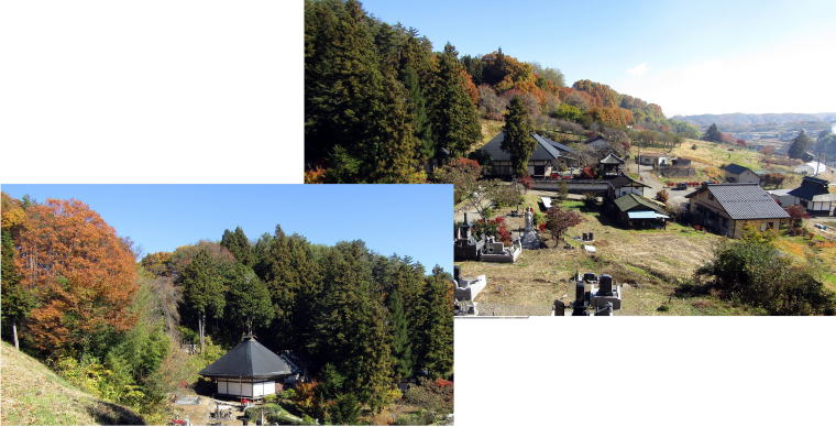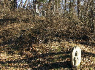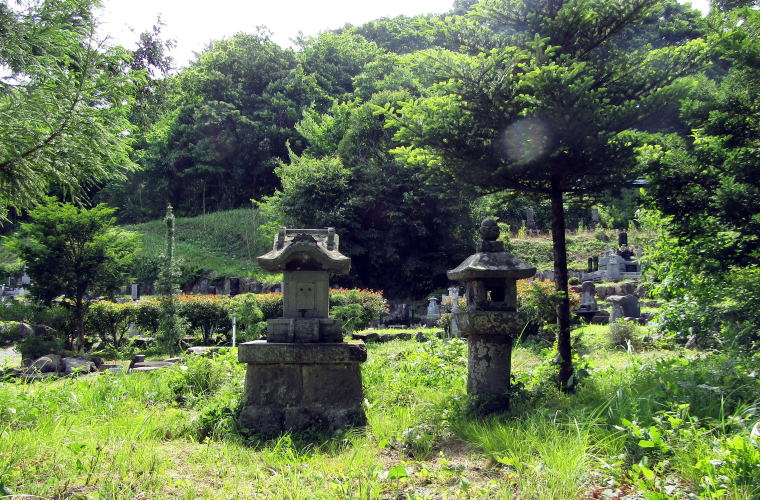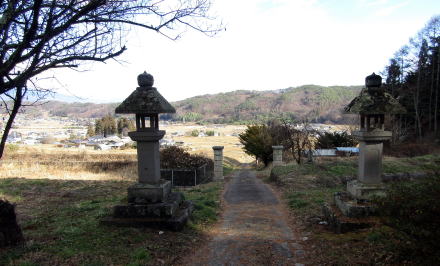 館の周りには家臣の屋敷もあったのですが、領主居館とともに移転し、その跡地(寺領・寺域)にやがて末裔たちが墓地をつくった・・・。丘南面のあちこちに墓地が散在するのは、そういう経緯があったからではないでしょうか。現在、残っている墓石・墓碑は江戸後期以降のものだけですが。
