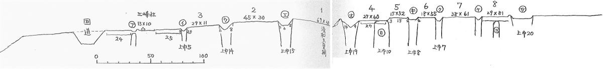 【天神城の縦断面図】 出典:宮坂武男 同上p274-275