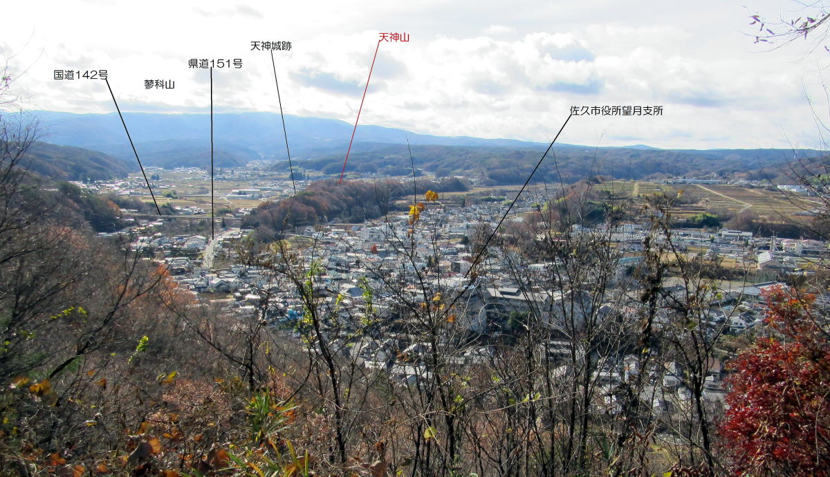 望月一帯については13世紀末から14世紀前半の状況を知る史料がないようです。したがって、14世紀前半〜中葉に天神山も砦が築かれたとして、それが誰による築城かは実際のところはわかりません。私は、望月氏が御牧原台地上から鹿曲川とその支流流域に降りてきて所領の開拓を進めたと見ています。そのさいに初期の天神城を築いたのではないでしょうか。
