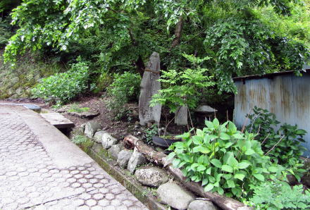ここから山裾尾根を200メートルあまり進んだ鹿曲川の右岸岸壁に蟠龍窟弁天堂や社殿群がありますが、これらも地の神を祀り尊崇する真言密教の使節だったのではないでしょうか。