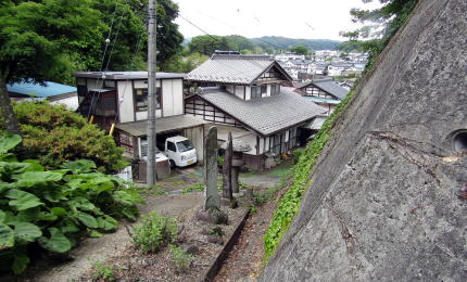 ▲崖下の左奥が大応院跡地(の一角)