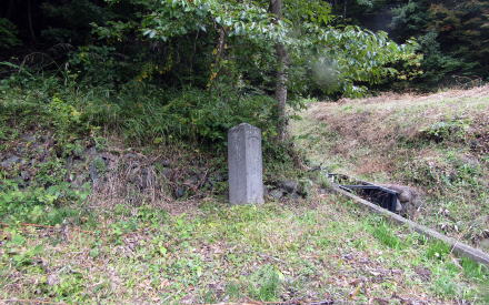 ▲この供養塔は、大乗妙典(経典)を500巻筆写して壺に入れて埋め、その上に記念塔を建てて、村の平穏や繁栄を祈願したもの。村人が頻繁に集まったり通ったりする場所に建てる場合が多かったので、境内の脇を往く街道脇道があったと推測される。