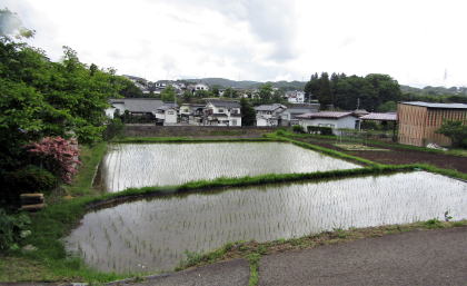 ▲同じ段丘の北側にある水田は、御牧原台地から流れ下る沢の水を利用 |