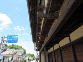 さて、県道166号(東御望月線)と出会うT字路を過ぎると、旅籠大和屋(真山家)の町家遺構があります。この家屋は屋根を瓦葺きにしたほかは1766年の再建時の構造をとどめているそうです。真山家は幕末の財政危機のなかで1854年に問屋を兼務することになりました。