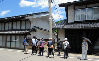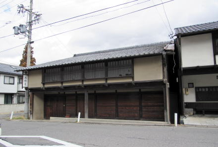 大和屋から少し南には脇本陣鷹野家の町家遺構があります。これも古い町家造りの基本構造を保っていますが、一階部分を街道側に増設してあります。鷹野家は大森家の親戚で、1660年代に八幡宿にいた次男がここに移住して脇本陣・問屋を務めることになったそうです。