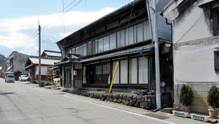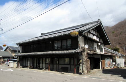 旧街道を挟んだ向かいには、かつて山城屋旅館だったという古民家があります。間口は8間近くあるので、江戸時代の敷地割りではありません。おそらくは、幕末頃から宿場の家数が減った時期に敷地を買い取って拡幅したのでしょう。