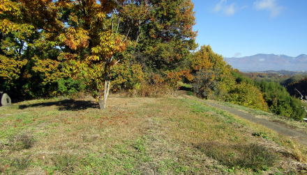 ![]() 倉見城跡の段丘: 城跡と呼ぶには狭い縄張で、城館ないし居館と呼ぶb根基ほどの規模だ。背後に尾根がある。 |