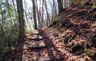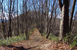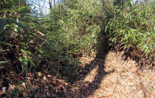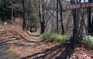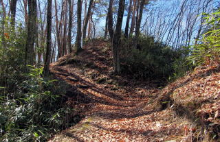 遊歩道の先に城跡の北の郭群遺構が見えてきた