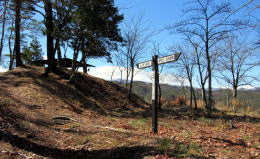 城跡遺構の入り口に立つ説明板によると、この城は別名を深山城または霞の尾城と呼んだそうです。室町中期(1400年頃)に大井氏または芦田氏(依田氏)によって築城されたのだとか。大井氏や芦田氏はその頃、佐久や小県に拠点を築いて割拠していた豪族領主たちです。