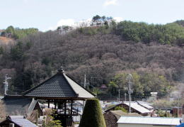 ▲西蓮寺の鐘楼の彼方に長窪城跡