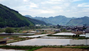 江戸時代の中山道は今では完全に田園の下に埋まっていて、跡形を探すこともできません。5月の田植え時期、水田地帯全体に満々と水が張られ風景を見ると、なるほど河畔近くを通っていた中山道は水害に悩まされたはずだと納得します。