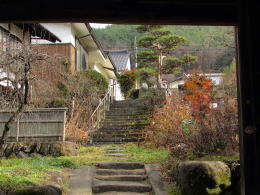 たとえば上の写真では、通り沿いの屋敷の中庭に段丘崖が走っている状態がわかります。町屋はこの険しい斜面に合わせた配置や造りになっています。
