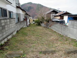 ▲空き地となった場所。宿駅特有の間口が狭く奥行きが深い町割り(敷地)の形状がよくわかる。
