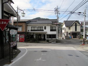 この角地の内側には旅館「濱田屋」があります。この旅館は、建物が横町と竪町にまたがるカギ型に並び連結されています。おそらくこの宿場では一番恵まれた立地条件です。