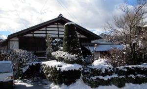 この建物は「本棟造り」です。そして、これに中山道沿いの町屋に特有の出梁造りが組み込まれていて、二階の床桁が一階よりも外に出ている形です。