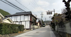 長久保宿は、火の見櫓の手前で右折して東に向きを転じます。ここからは山に向かう坂道になり、笠取峠までずっと上り坂が続きます。