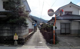 竪町中町の東側で顕著なのは、やはり本陣石合家の広大な敷地です。街道からは敷地の境界はわかりませんが、おそらく30間(約50メートル)ほどはあったのではないでしょうか。