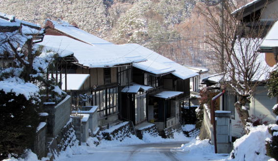 そんな風に日本の宿場町の歴史や伝統・文化を社会史的に見つめてみようと思ったのは、この冬、雪景色のなかでまるで水墨画のような下町の風景を目にしたからです。
