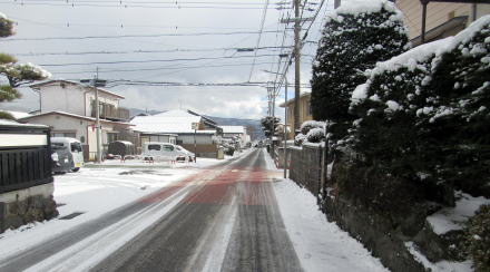 街道から少し入った住宅地の近くには今でも耕作地が残っていて、また道筋も非常に不規則です。農道がそのまま住宅街の道路の置き換わったことがわかります。