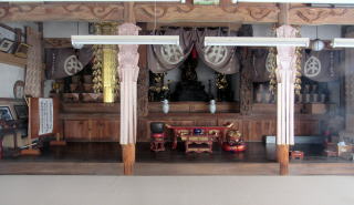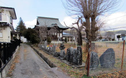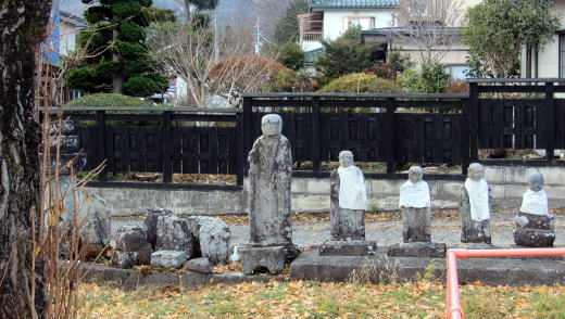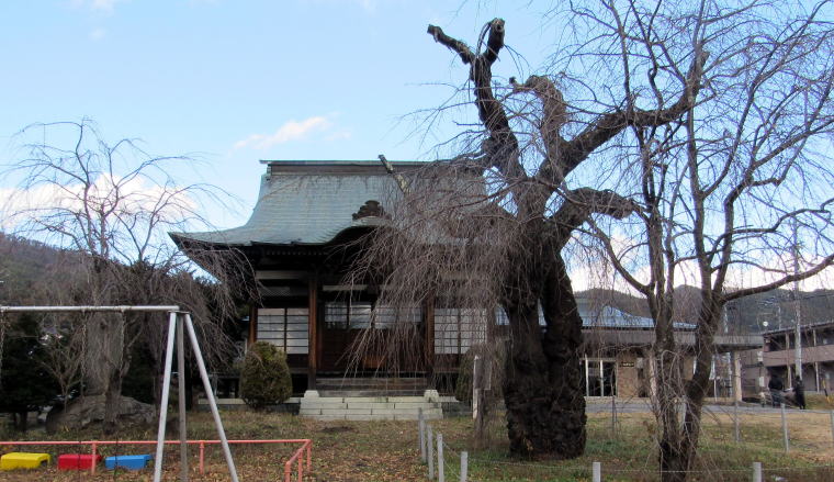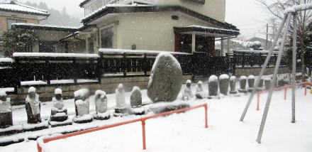 ![]() ▲明治期には学校の境内でもあった境内の西端に石仏群が並ぶ ![]() ▲観音堂の前に立つ枝垂れ桜と背後の今井区民センター ![]() ▲降雪後に陽光を浴びる観音堂。向拝は唐破風づくり。 ![]() ▲自動遊具の奥に並ぶ石仏・石塔・僧侶墓碑群 ![]() ▲多種多様な石仏・石塔がここに集められている |