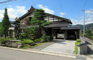 ▲中山道以前の塩尻宿があった古町の民家 雀踊りを載せた本棟造り