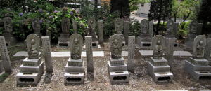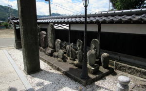 ▲冠木門の両脇にはたくさんの石碑と石仏が並ぶ