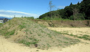今では、150メートルほどの堤防遺構が残っているだけです。堤防は底面で幅4メートル、上面で幅2メートル、高さ2メートルほど。