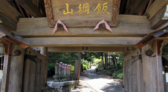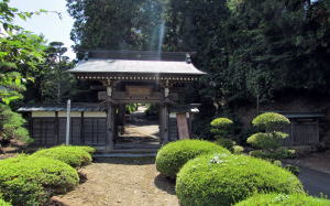 ▲飯綱山常光寺の山門 端正な薬医門をくぐると六地蔵が迎えてくれる