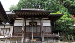 常光密寺の扁額があるお堂。みごとな唐破風だ。