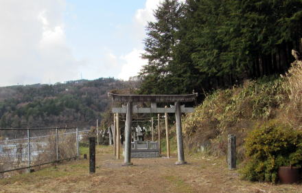 今は、窪地の北側の段丘上に高尾神社祠と石塔群が祀られています。石塔や祠が古びていますが、石製の鳥居や神社の台座が新しいので、この一帯の道路建設で元あった場所から移されて、ここに集められて合祀されたのではないでしょうか。