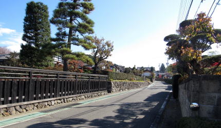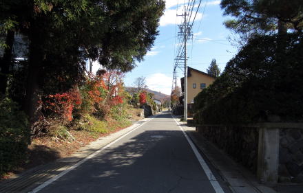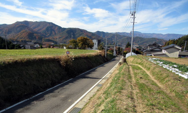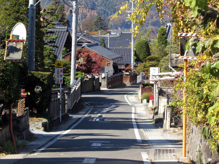 すでに書いたように、柿沢集落のなかを往く街道は、家並み700メートルほどの間に47メートルものぼる傾斜です。鉄道風に表記するなら64/1000(64パーミル)という急勾配で、列車が登れないような坂道です。