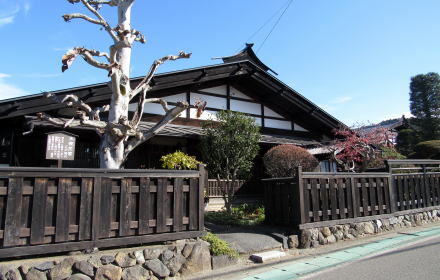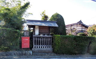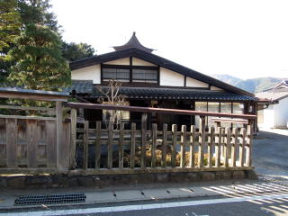 高札場は前庭の生垣が並ぶ風景に溶け込んでいる