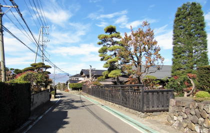 上り下りの道なりや家並み、庭園の並びは、信濃の山間や谷間を抜けて往く旧中山道の風景の素晴らしさのなかでも、最も大きな要因のひとつです。柿沢から今井までの塩尻峠を往く旅は、中山道歩きのなかでもおススメしたいコースです。