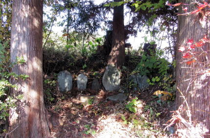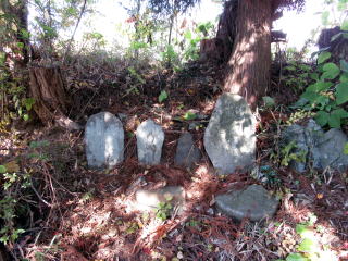 杉木立ちの根元に古びた石仏が4体並んでいる