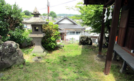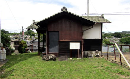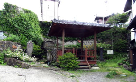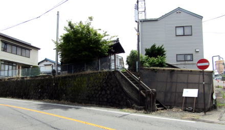 ![]() いま不動尊堂は一番上の段丘崖の上に置かれている。往古、左手の道路が境内で崖近くに堂舎があったのではないか。 |