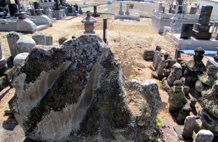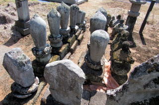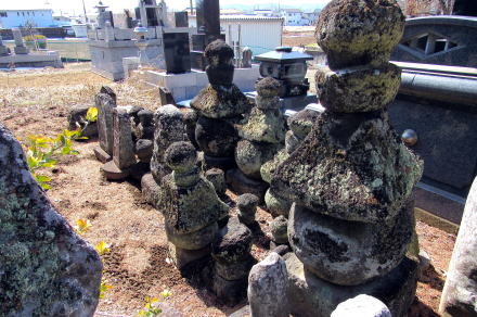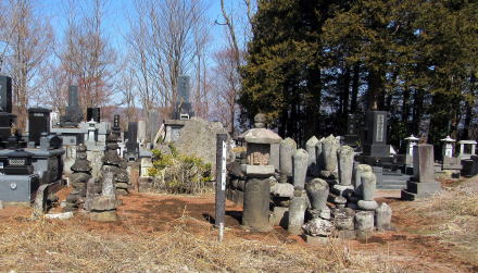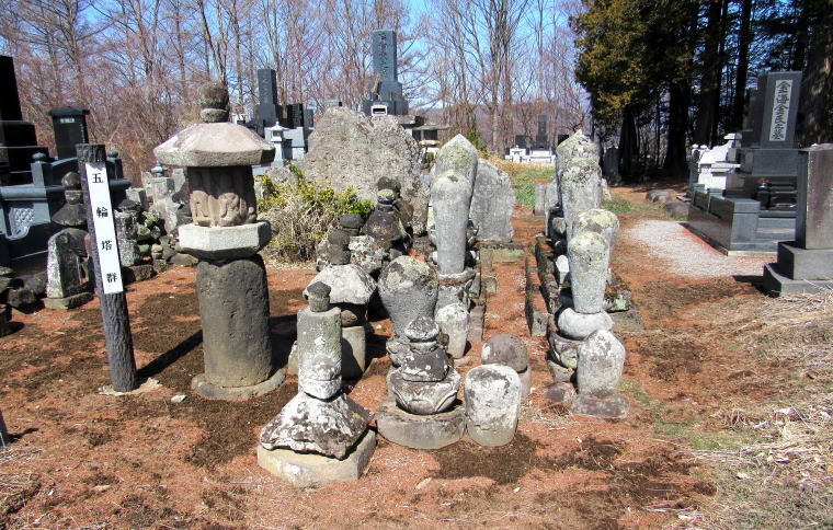 ![]() 塩名田宿の南側の小高い丘にある五輪塔群。長寿寺の遺物だが、今は正縁寺の霊園の中央にある。 |