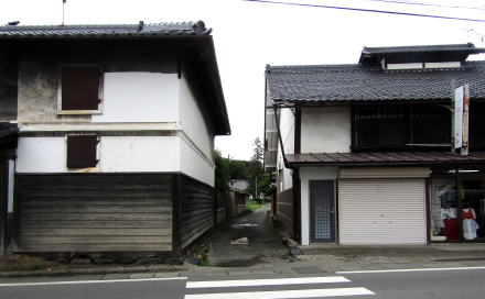 現存の本陣の遺構は本棟造り妻入です。この町家になったのは、1754年(宝暦4年)に火災で焼失した後に再建されたときだと見られます。それまでは宿場の発足当初からの茅葺造りだったようです。もう1軒の本陣善兵衛家の造りも、江戸後期までには本棟造り妻入となっていました。