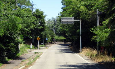 ▲濁池の南畔の丘を横切る県道148号:左手に溜め池がある