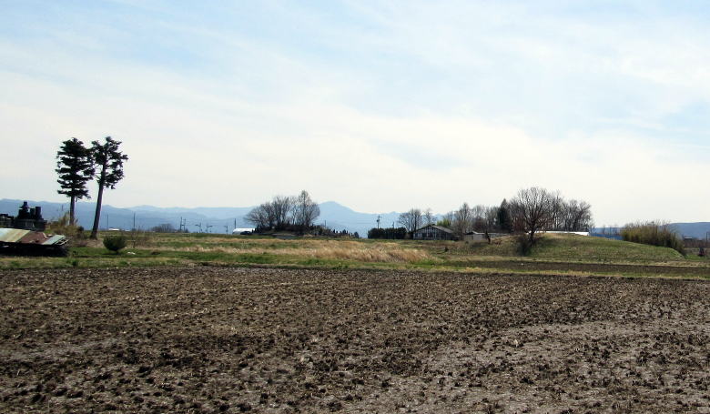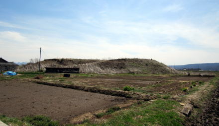 ![]() 平坦な水田地帯のなかに2メートル前後の高さに盛り上がっている土砂の小丘群 |
