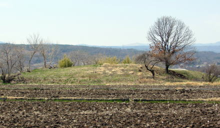 なかには、ごくわずかに本物の古代の墳丘・墳墓(古墳)があります。それらは、小さな地方部族侯国の豪族(君侯)の墓ですから、それぞれ数キロメートルは離れています。小侯国は、半径が数キロメートルの版図圏域をなしていたということです。 |