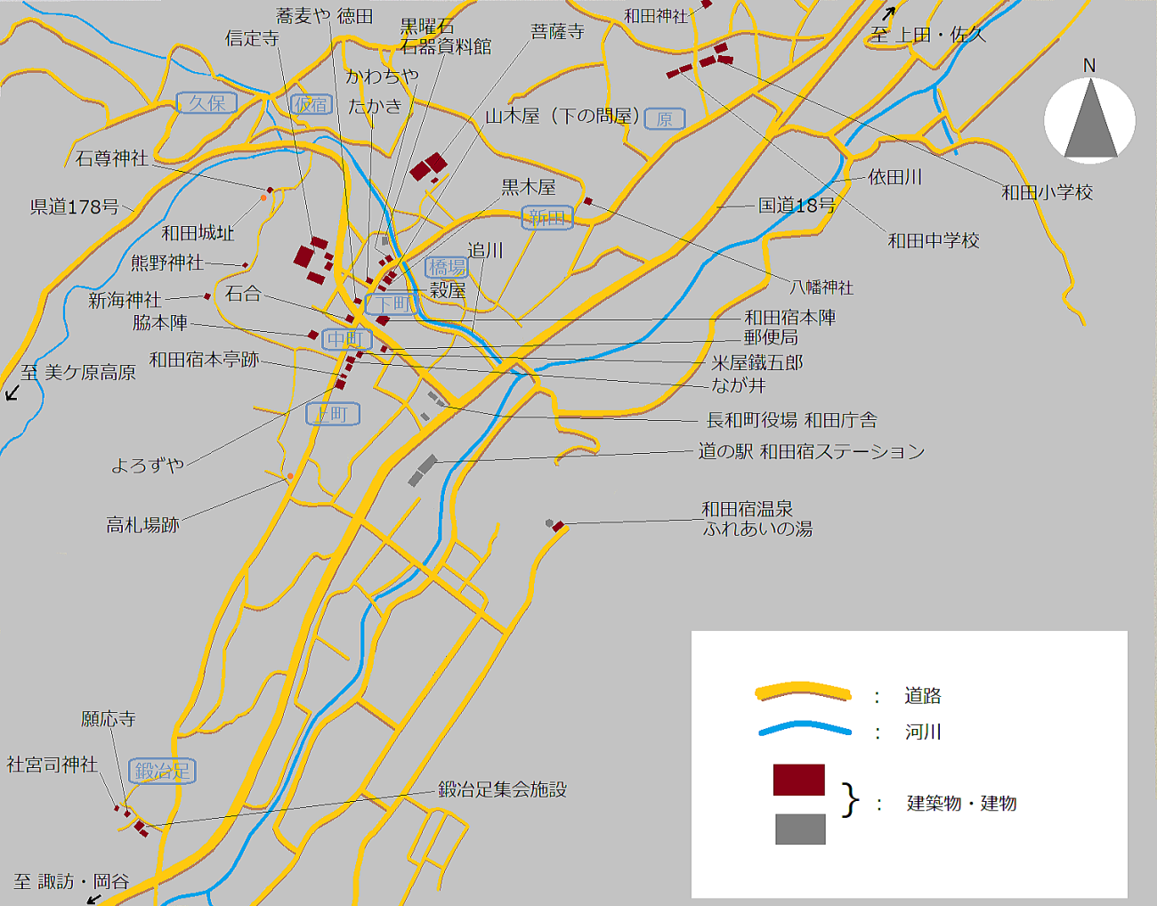 和田宿中心部 やや詳しい街歩き絵地図