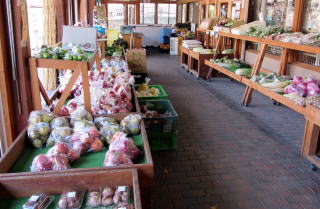 ここには食堂やトイレに加えて、野菜や果物、山菜、きのこなど、この地の特産物の売り場があって、連日多くの人を集めています。