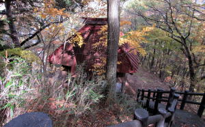 尾根の先端を縁取る崖というべきほどの急斜面の上に石尊神社があります。ここは、地元の人から「古峰さん」という愛称で親しまれているとか。古峰山神社と仮称されることもあるようです。