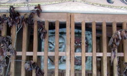 ▲奥祭壇には天狗の面が祀られている