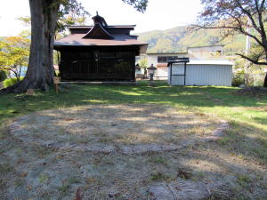 ところが、大井氏の居館――またはその真上の砦――の鬼門となる位置(方角)にあるのは、菩薩寺と和田大宮神社です。ともに境内から信定寺辺りがよく見わたせるので、居館の鬼門除けに関してはこの2つが相当すると私は見ています。