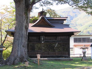 八幡神社の創建に関しては、和田大井氏の城砦ないし居館の鬼門除けとして建立されたという伝承があります。鬼門とは北東の方角ですから、今の八幡神社の位置では信定寺の近くにあったとされる居館の鬼門とはなりません。伝承はきわめて不正確というほかありません。