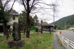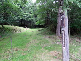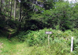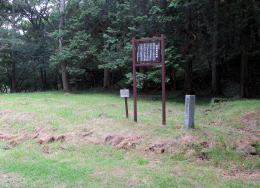 やがて道路の左傍らに旧中山道の小径の分岐を示す道標が見えてきます。その小径に踏み込むと、西餅茶屋跡があります。ここは、もともとは街道荷役の人馬が休む立場でしたが、やがて4軒の茶屋ができて、峠を往来する旅人の休憩所となりました。