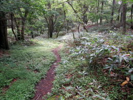「数時間程度は続く登山」の装備をして歩いてください――とくに靴。たまにクマが出没するらしいので、大きな音が出るものを携行してください。しかし、旧街道を遊歩する人たちのために、道沿いの下枝や下草は刈り払われています。