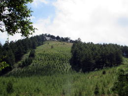 さて、山頂付近から下ってしばらく行くと東餅茶屋跡の脇に来ます。ここにはその昔、5軒の茶屋があって、峠を往来する人の休憩所になっていました。