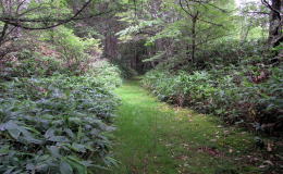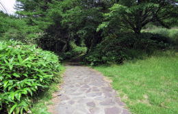 この辺りまで来ると、山腹の勾配もかなり緩やかになって、街道の山道も平坦になります。草芝で覆われたところもあって、山歩きが楽しくなります。